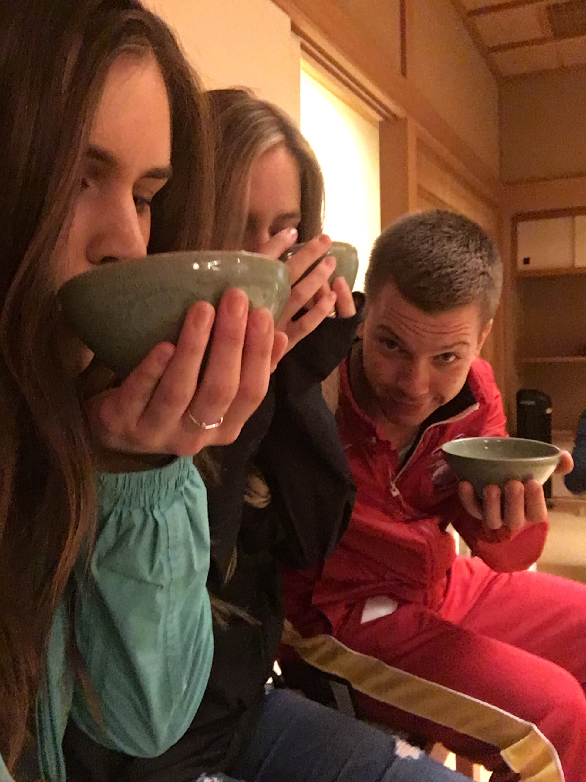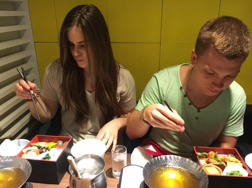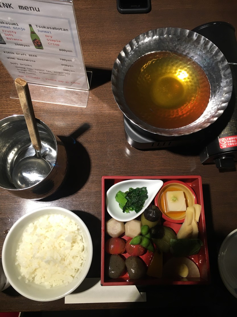 Once the ceremony was over Atrem, Jamie and I had a Japanese style lunch. We had an assortment of vegetables (with options of fish and meat) that we dipped in a boiling broth that was in the middle of the table. I also had Sake that was well known at the brewery where we were eating. 😏